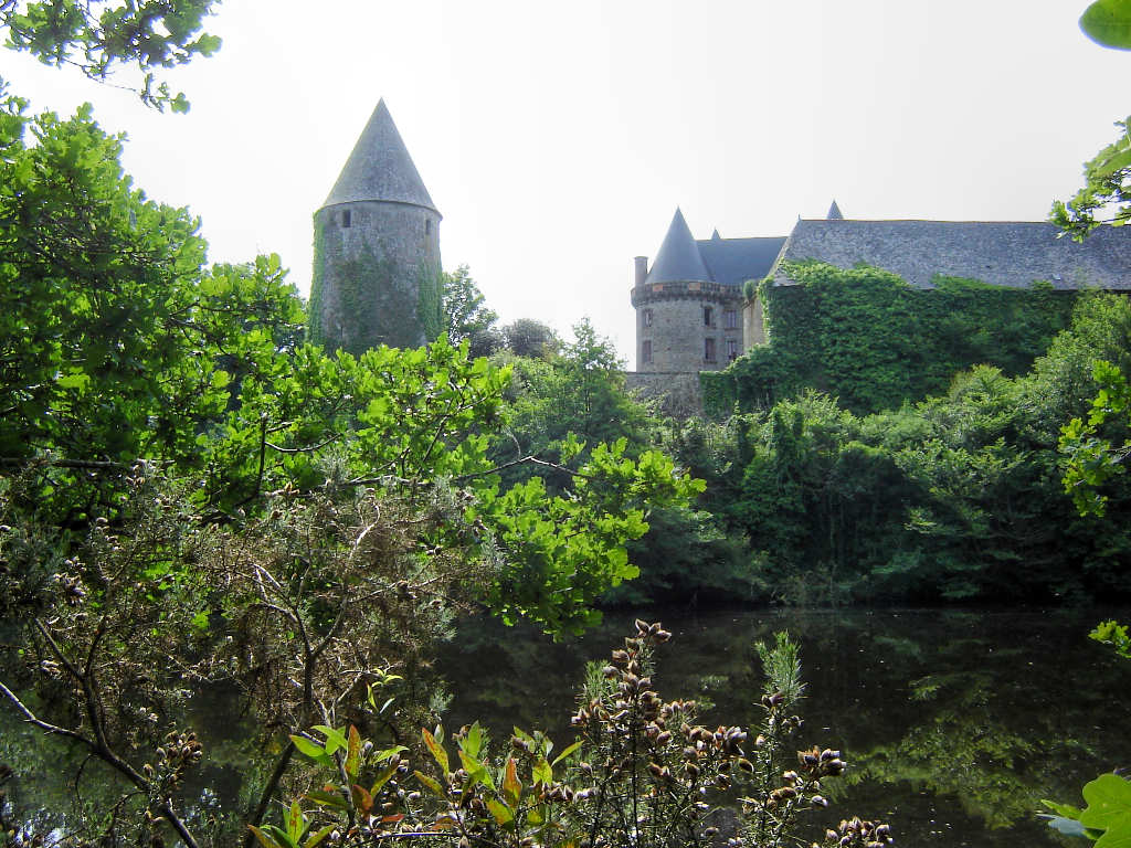 Un château féodal, complètement muré au rdc, et apparemment à l'abandon, maître des lieux ! magnifique battisse, haute perchée, surplombant la vallée boisée et l'étang à ses pieds.