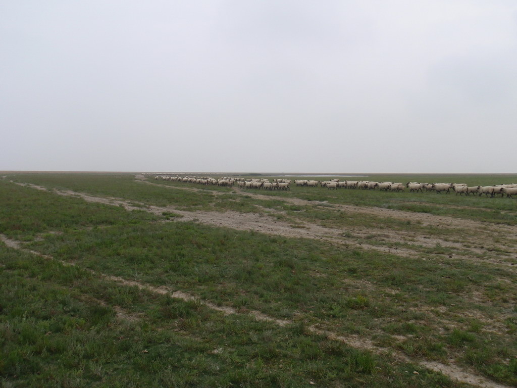 Après avoir subit pendant 3 kilomètres les attaques des moustiques affamés, nous traversons un pont assemblé avec des poteaux EDF en partage avec un immense troupeau de moutons à têtes noires. Ça bêle de tous cotés.