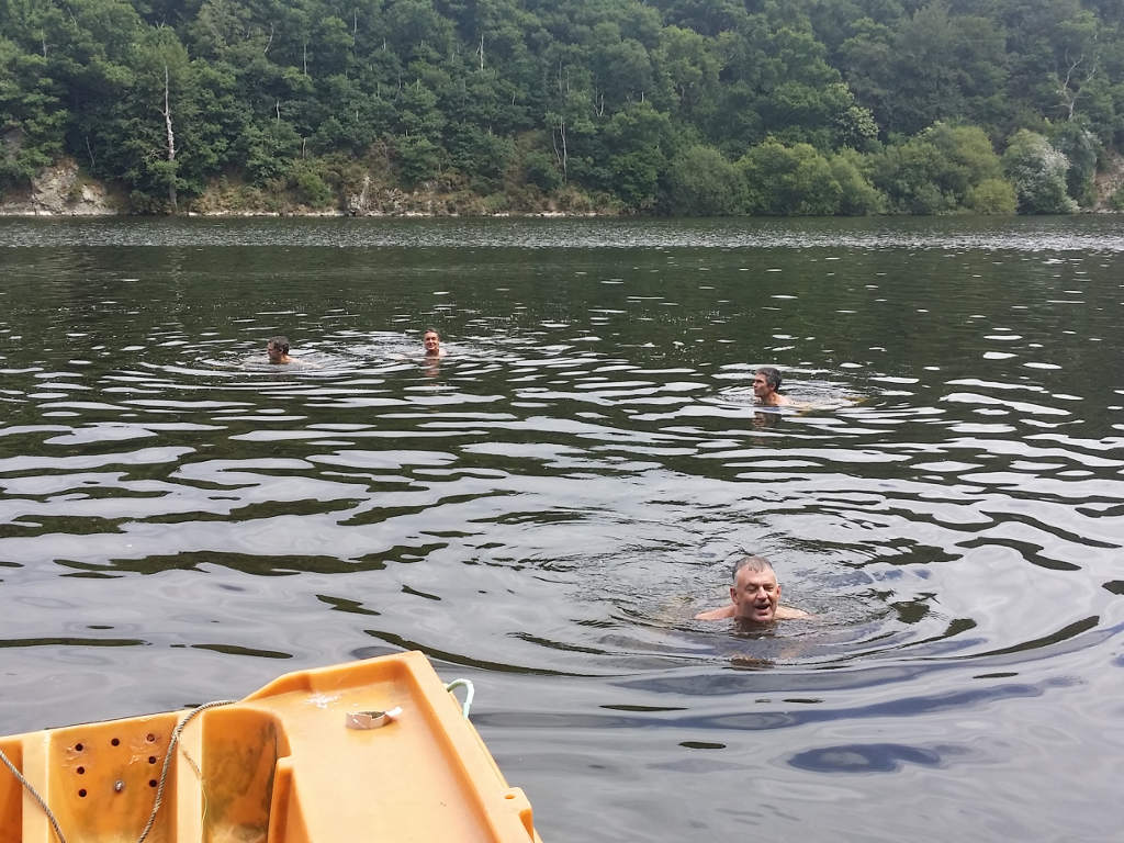 Cerise sur le gâteau : on a pu se baigner dans l'Arguenon ! Deux fois pour les plus téméraires, même Christiane qui d'habitude ne rentre pas dans de l'eau en dessous de 23° et 35° dans l'air. Là, j'estime l'eau à 18°5, et vous ?