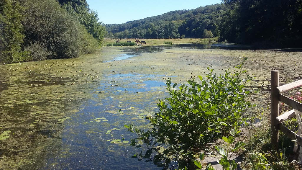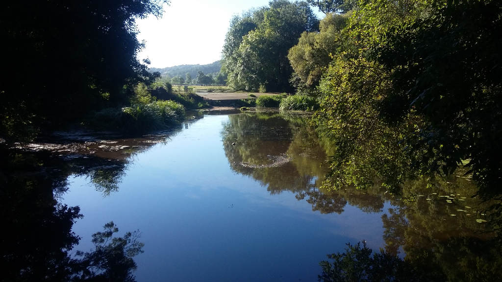 À l'approche du bourg de Guémené-Penfao, nous traversons la rivière pour nous aventurer sur l'autre versant de la vallée. Un peu plus à distance du Don, le sentier nous fait prendre un peu d'altitude, jusqu'à atteindre l'étang au dessus duquel nous pique-niquons.