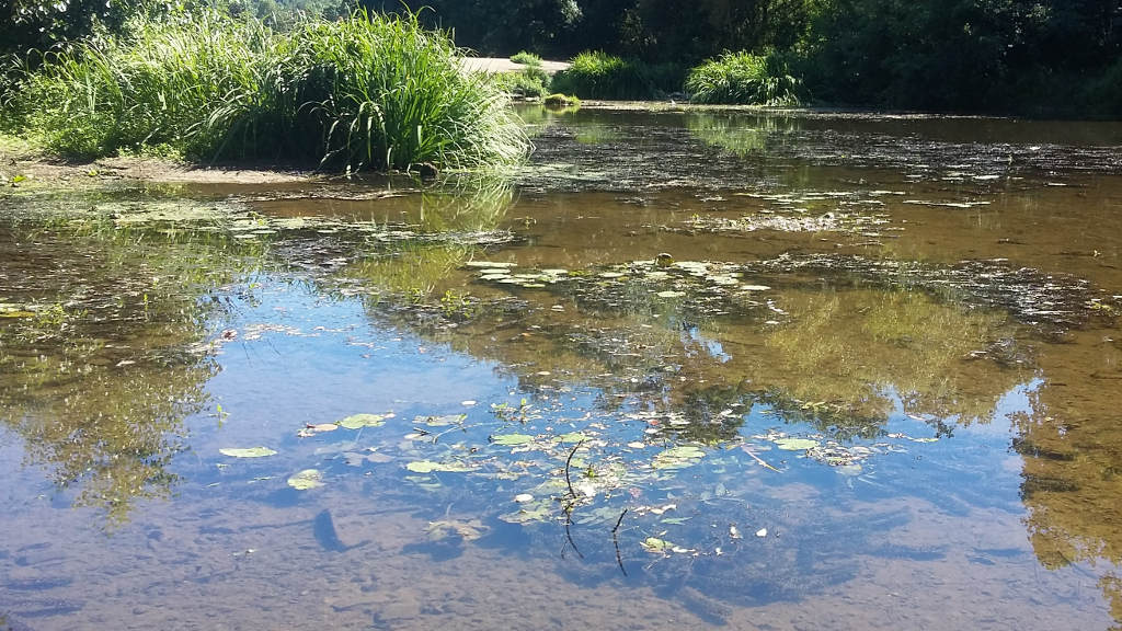 Dom nous avait annoncé un départ original : mission accomplie, puisque nous commençons par débroussailler une centaine de mètres de sentier, complètement envahi par les ronces et les orties. Mais enfin, Dom et Pierre en viennent à bout, et nous étrennons ce sentier tout neuf, qui nous permet de rejoindre les bords du Don.