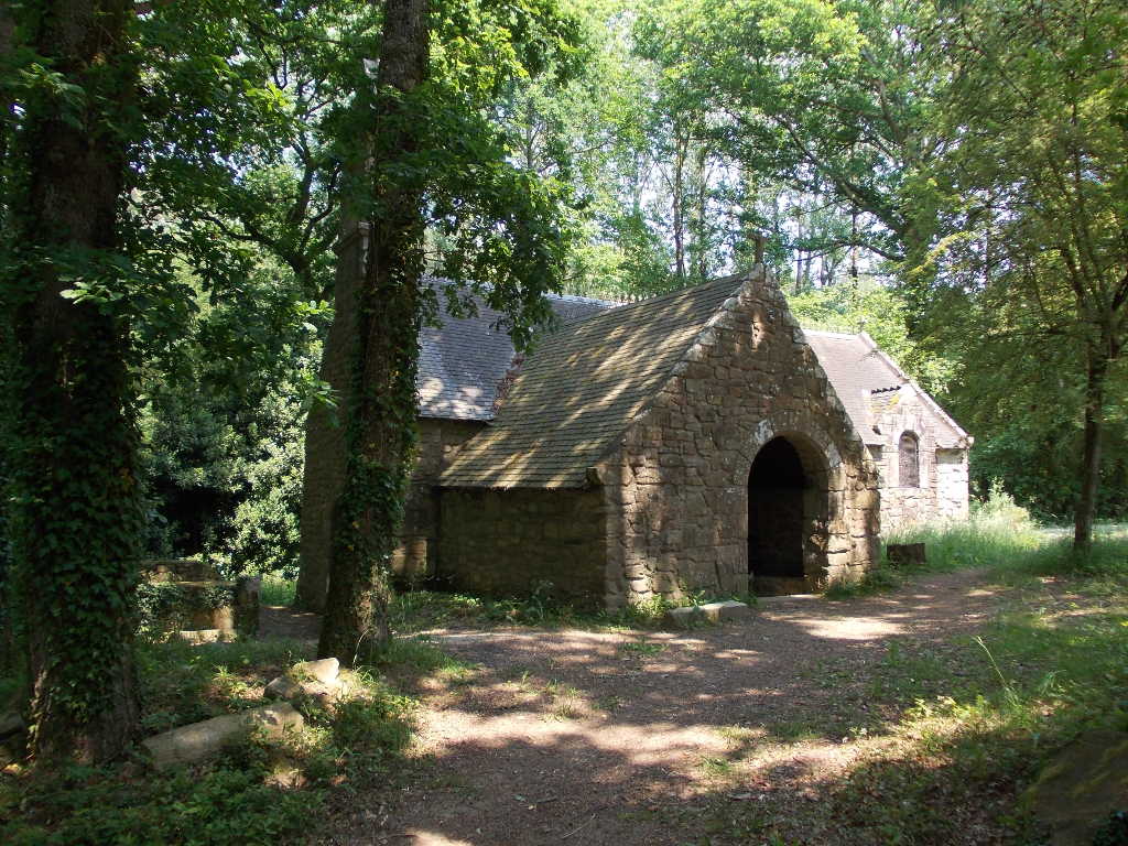 Nous repartons par les chemins et petites routes, jusqu'à la charmante chapelle Saint-Méen qui surplombe la rivière, où nous faisons une photo de groupe.
