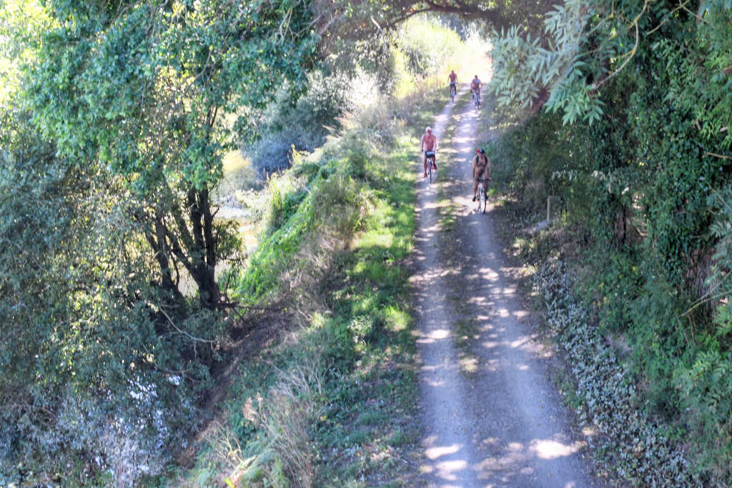 Après que tous les participants soient arrivés et après avoir confiés nos sacs pour le pique-nique à Alice et Jean-Yves, qui nous accompagnerons toute la journée avec leurs voitures et nous prendrons en photo (Merci à eux), à 10 h30 le signal du départ est donné. Rapidement après avoir traversé le marché, nous rejoignons le chemin de halage sur les bords de la Vilaine en direction de Guipry-Messac,