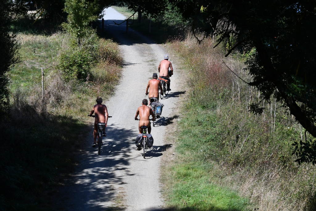 Nous n’étions pas les seuls d’ailleurs, car nous avons croisé ou dépassé environ 37 personnes, sans compter les bateaux ou les pêcheurs un peu cachés. Tous ont été étonnées de nous deviner si peu vêtus, d’où cette réflexion plutôt drôle : « on vous a volé vos vêtements ? » Et que des sourires, pas de remarque désobligeante ou de reproche, quelques-uns nous ont même photographiés.