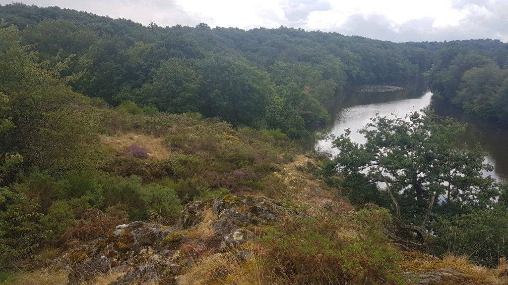 Un passage en forêt nous conduit après une petite hésitation sur le chemin à prendre au bord du joli lac de Trémelin. On feinte quelques promeneurs, on goute les vues du bord du lac, et nous décidons de tester une petite rallonge qui ne s’avérera pas formidable, car pas du tout tracée ni balisée. Grâce au GPS d’Alain on retrouve néamoins notre sentier habituel, et Romain retrouve son kilt qu’il avait perdu en route.