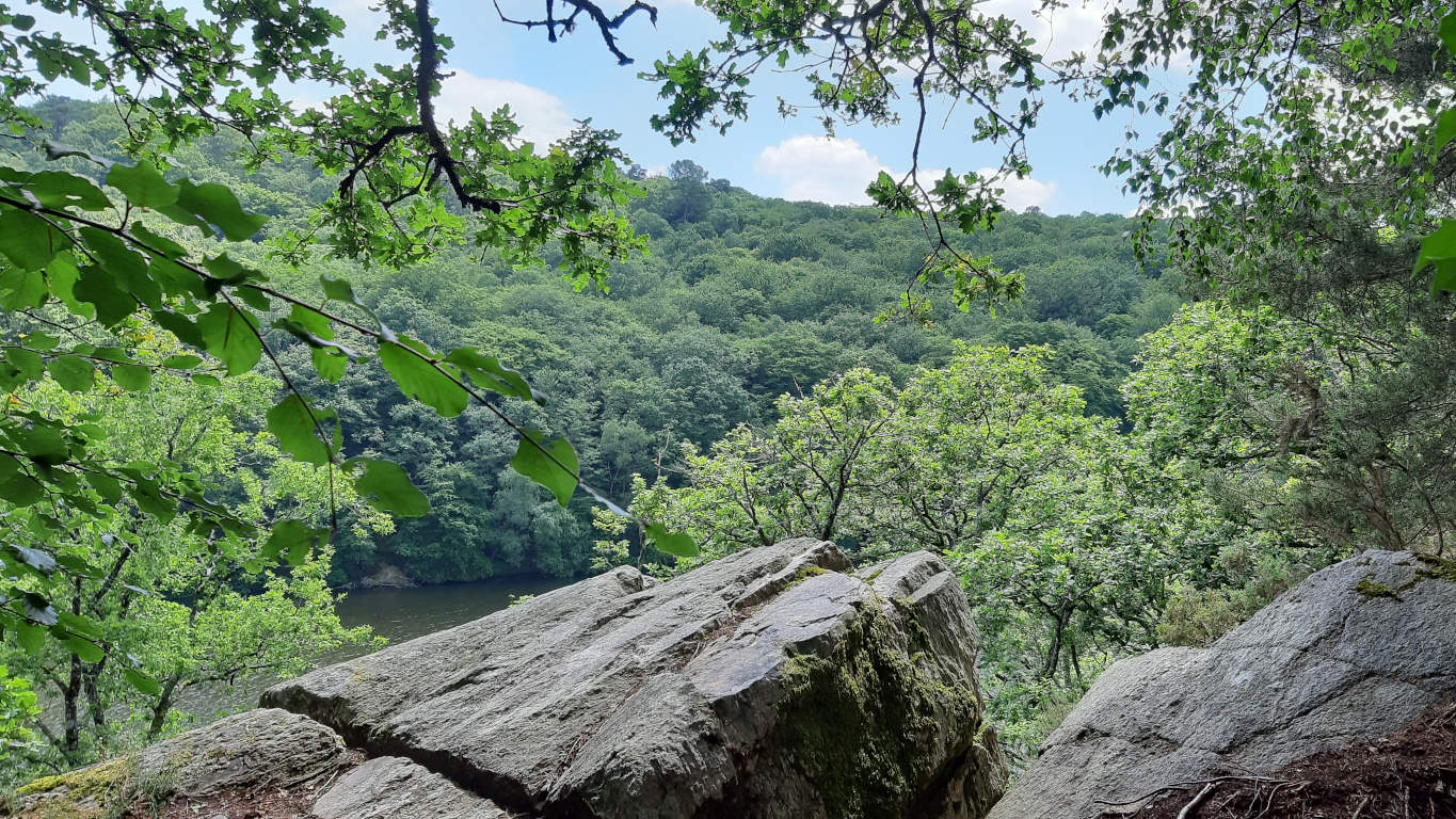 Nous avons donc pu profiter pleinement des lieux, paysages magnifiques, marche ombragée par la forêt dense au bord de l'eau tout au long du parcours le long de ce lac atrificiel formé sur le Blavet. La température était dès le départ, super agréable.