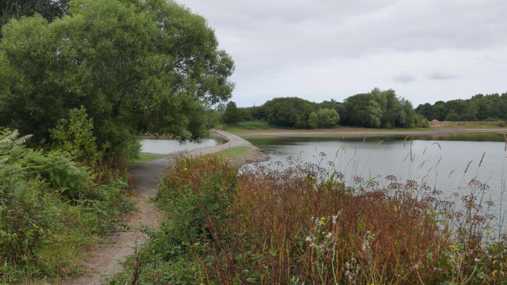 On marche sur de beaux chemins, comme déjà indiqué, et quasiment en permanence dans une bande de forêt qui longe le lac. On traverse la route qui traverse le lac par un pont. Il y a une dame qui promène son chien et aussi plusieurs voitures garées, sans doute appartenant aux pêcheurs qu'on voit un peu tout au long du trajet. A part eux on croise juste un coureur (et qui n'est pas d'humeur à nous dire bonjour) et une poignée de randonneurs textile.