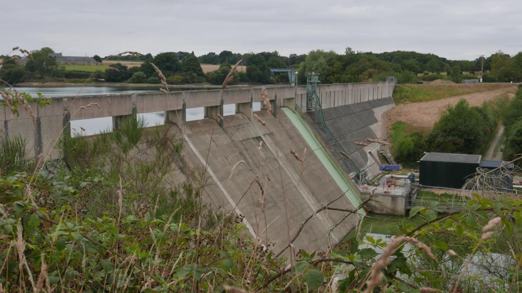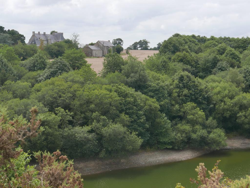 Au niveau du barrage de Bois-Joli il y a quelques maisons. A partir d'ici on est rejoint par un deuxième chien, bien plus grand qu'Alexandre. Après avoir fait connaissance ils s'accomodent de leur présence mutuelle et l'invité non-invité reste avec nous pour le reste du trajet. Il attend sagement quand on fait notre pique-nique, nous accompagne jusqu'au retour à Tréméreuc, et quand on commence à se demander ce qu'on devra en faire, il disparaît discrètement.