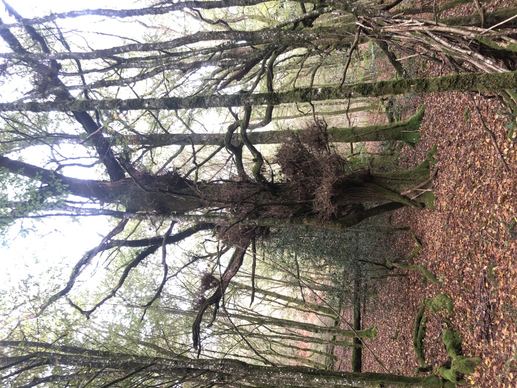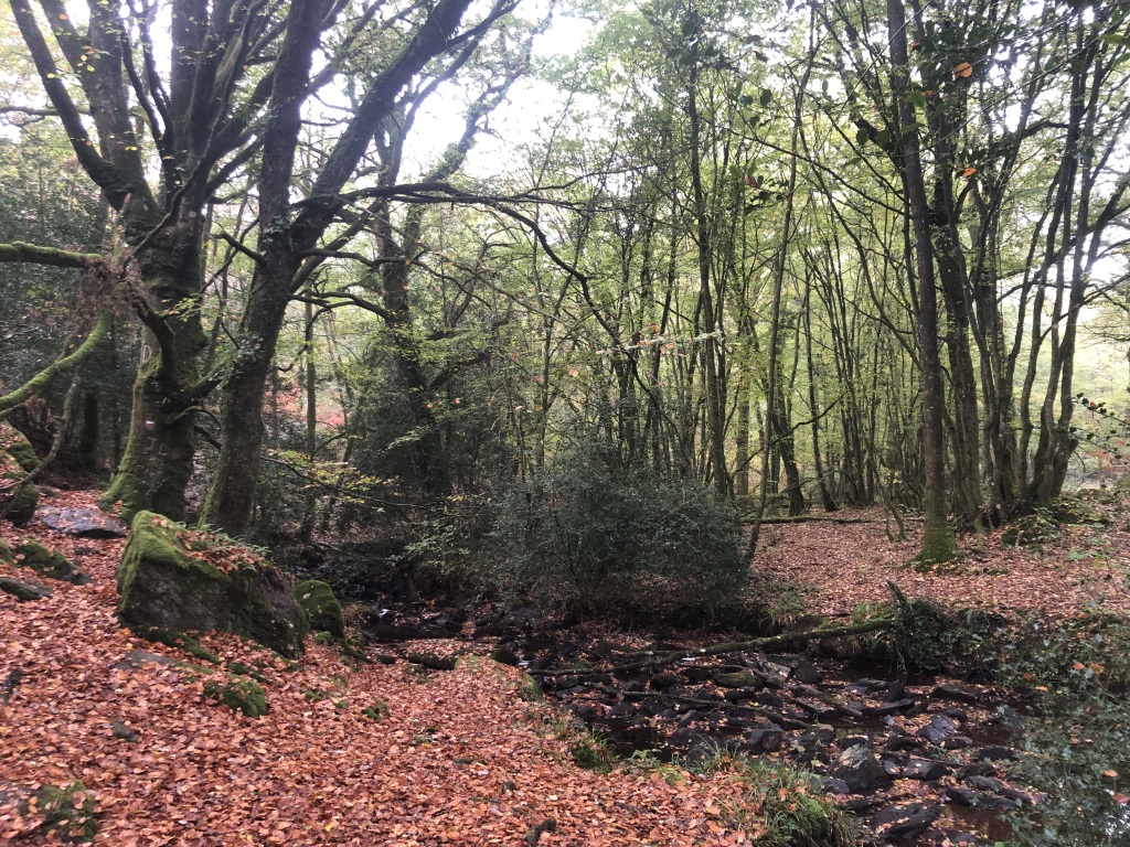 La première partie de la rando suivait le tracé de la GR37 le long de l'Aff, dans une forêt bien humide avec un ruisseau quasiment à sec. Le résultat était un sentier assez glissant par endroits et une profusion de champignons partout. On a vu une poignée de gens qui en ramassaient, mais autrement le sentier était tout à fait calme.