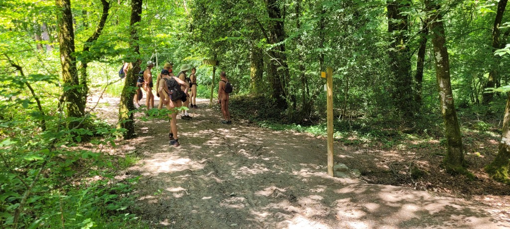 Après quelques dizaines de mètres, nous nous engageons sur le sentier et tous adoptons rapidement notre tenue préférée, même si une très légère fraîcheur se faisait ressentir en raison du sous-bois et de la proximité de la rivière.
