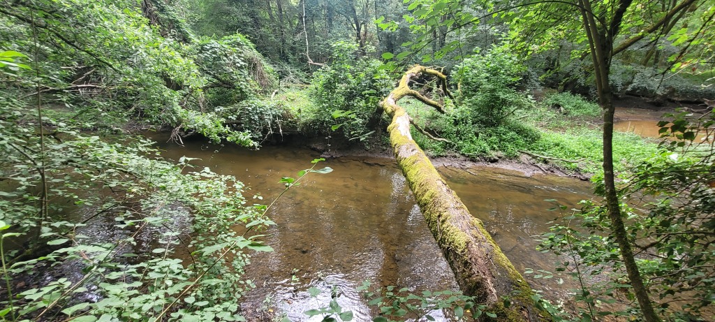 Après cette première partie légèrement sportive, nous marchons en sous-bois et nous apercevons un peu plus loin dans le bois une classe de jeunes élèves en classe de découverte nature dans les sous-bois. Chacun remet sa tenue réglementaire pour ne heurter personne et continuer notre redescente à travers bois sur le bord de la rivière et continuer notre balade en bordure du Don.