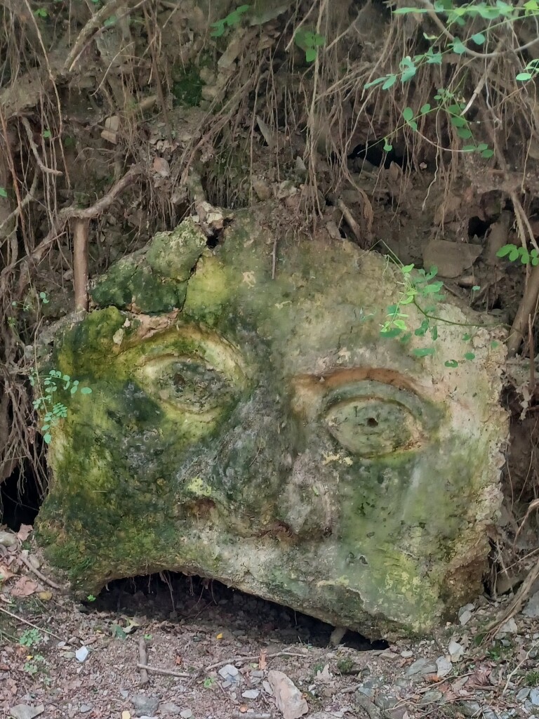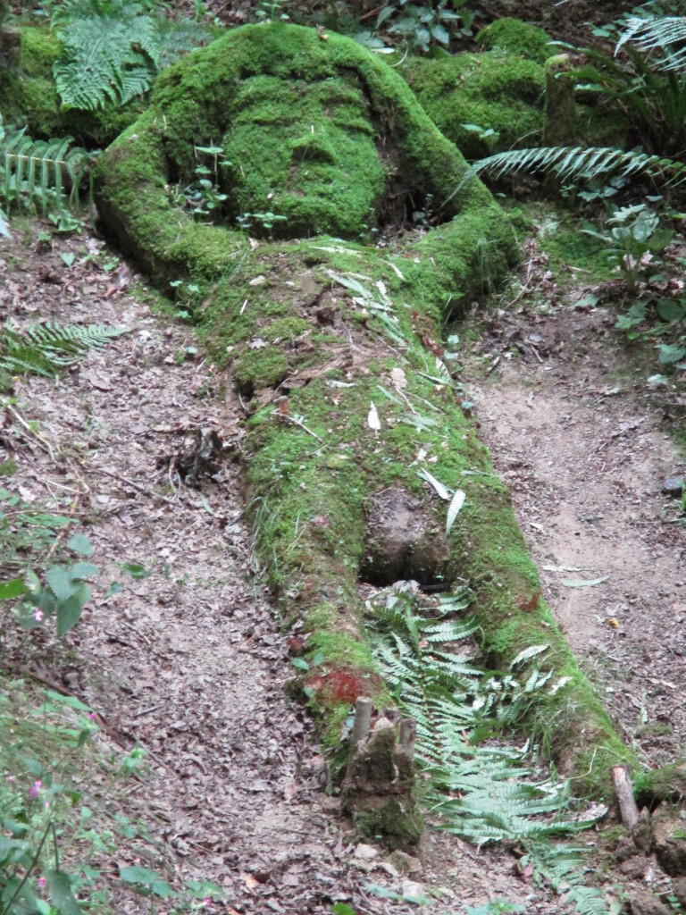 Après le repas avec échanges de gourmandises sucrées, nous sommes repassés au point de départ pour nous diriger, à l’opposé, vers des bois attenant à Guillac via, probablement, une ancienne voie ferrée (puisqu’il y a encore à Guillac l’ancienne gare). Puis nous nous sommes engagés dans la forêt où nous avons eu la surprise de voir quantité de sculptures, en bois principalement, d’animaux et personnages féériques sur notre parcours jusqu’à un tunnel étroit et glissant que nous avons franchi. Sortis du bois nous avons alors pris des chemins de terre agricoles jusqu’à Guillac où nous nous sommes textilisés. Puis retour aux véhicules.