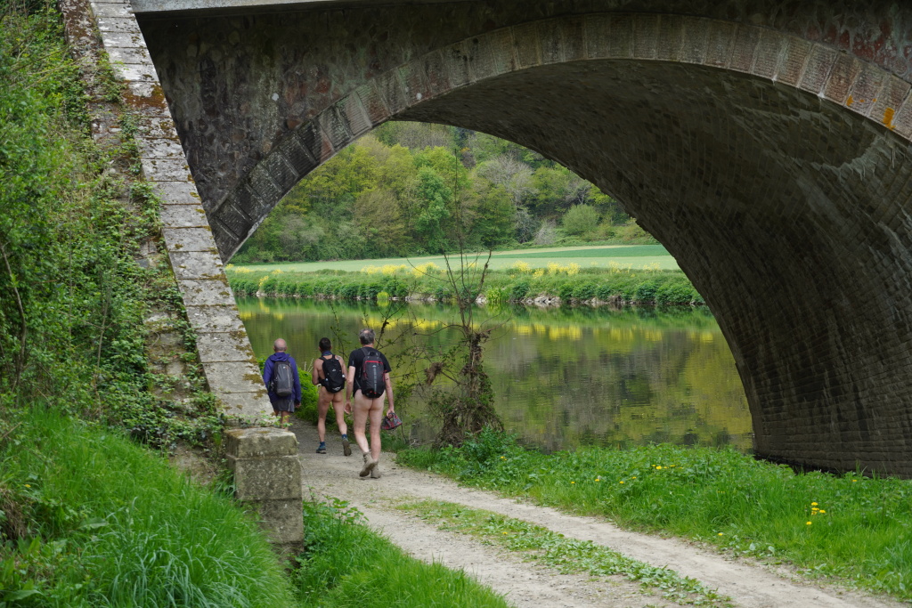Revenus à l'aire de pique nique on s'installe à la table en béton prévue à cet effet et on se rhabille, d'une part à cause du chemin de halage en face, mais surtout parce que le soleil a disparu et il fait bien trop frais pour rester immobile sans rien sur le dos. Vers la fin du repas Michel nous rejoint et on repart à 6 pour la suite.