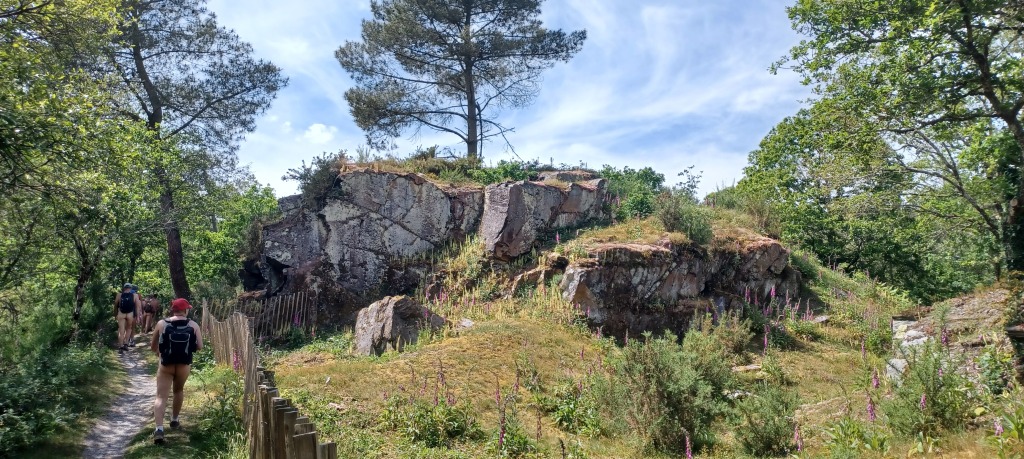 Groupe très sympathique à la tête duquel Alain notre Guide nous a fait découvrir différents paysages : bord de forêt, sous bois, vallons, landes, rivière et étang dont certains ont pu profiter afin de se rafraichir tant la journée était bien chaude . Nous avons terminé par les mégalithes de St Just.