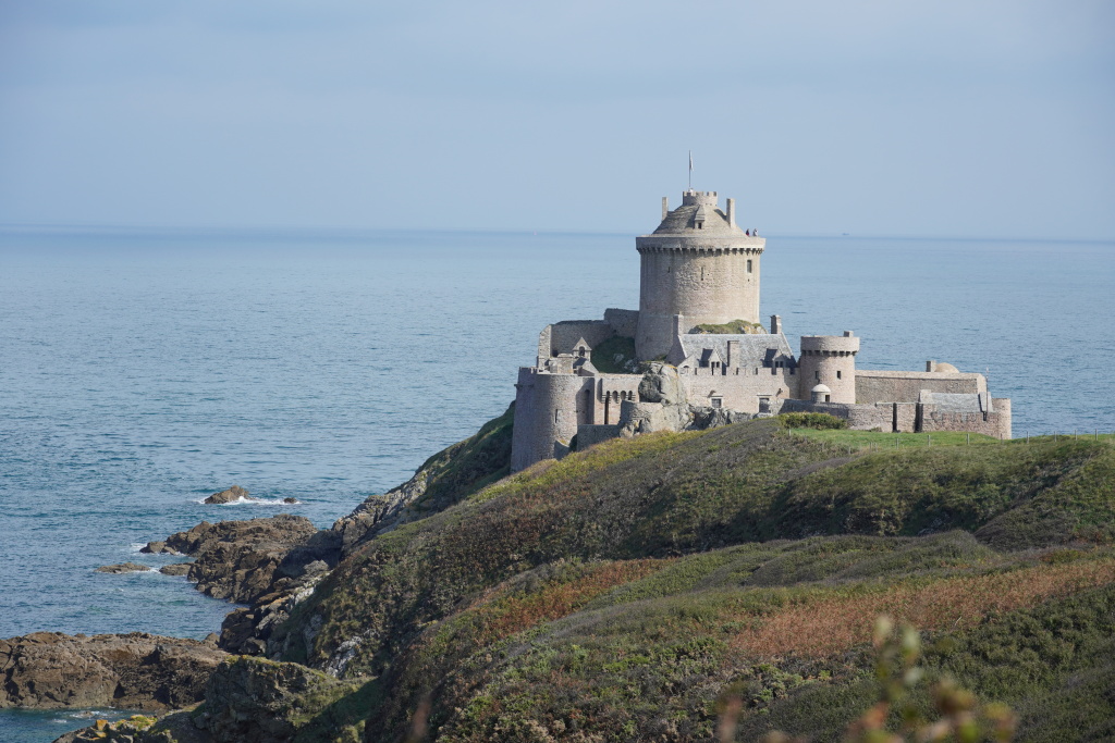 Nous avions vu beaucoup de gens passer, aussi on continue le parcours habillé jusqu'au Fort la Latte. Quelques photos depuis le parking et nous repartons.