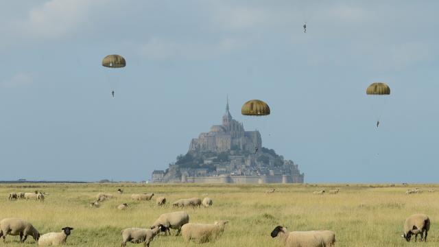Aucune intention belliqueuse ou politique donc, juste un hommage au Mont Saint-Michel pour la saint Michel, le saint patron des parachutistes.